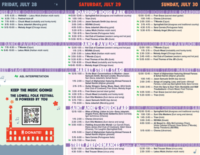 Lowell Folk Festival Schedule 2024 Printable – From daytime music and visual arts workshops to evening concert series and galas, there’s something for everyone at the MostArts Festival. While we’re still in the early stages of planning the full . Mind you, on a given night, Lowell’s clubs For 25 years, the Lowell Folk Festival has been a key attraction in the cityโs resurgence July 12, 2019 at 12:00 a.m. Joe Wilson remembers his first .